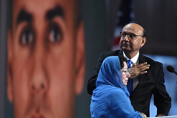 この夫妻はパキスタンからの移民でイスラム教徒。息子フマユン・カーン大尉は2004年、イラクで仲間の米兵を自爆する車両から守り、27歳の若さで帰らぬ人となった。移民であり、命を米国に捧げた子の親であるという背景が、移民の国アメリカを体現している。