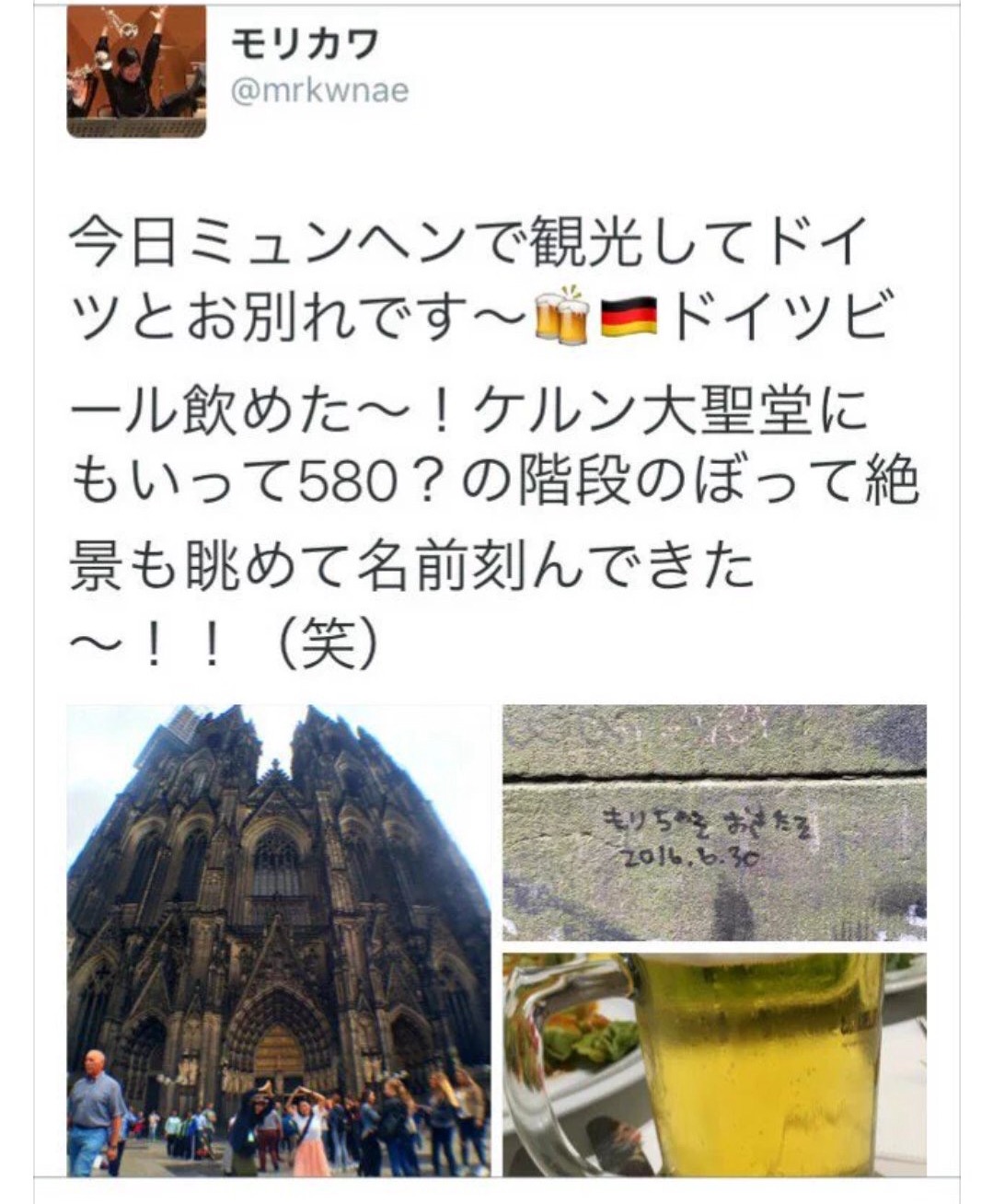 ちな、6/30にケルンに観光したもよう