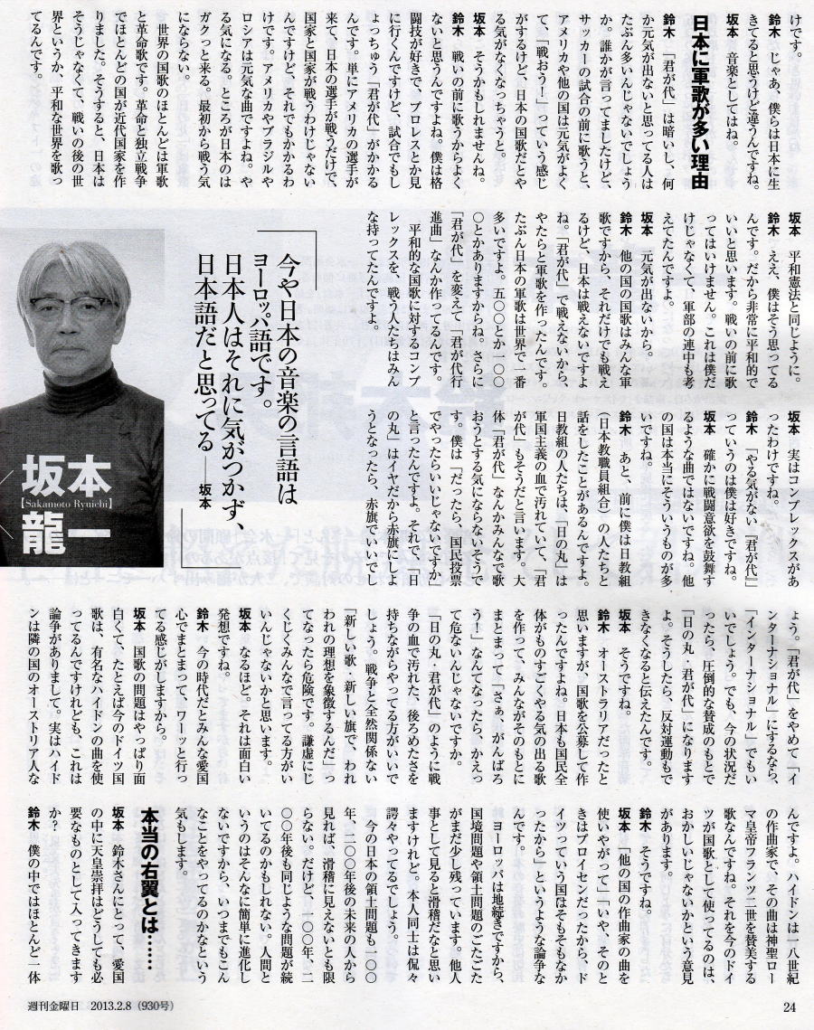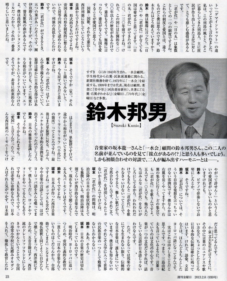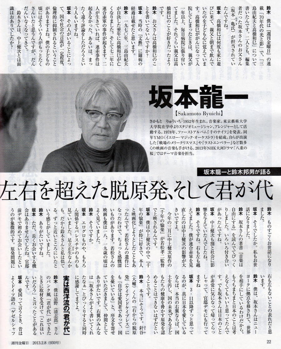 ■ 『左右を超えた脱原発、そして君が代』 坂本龍一×鈴木邦男
