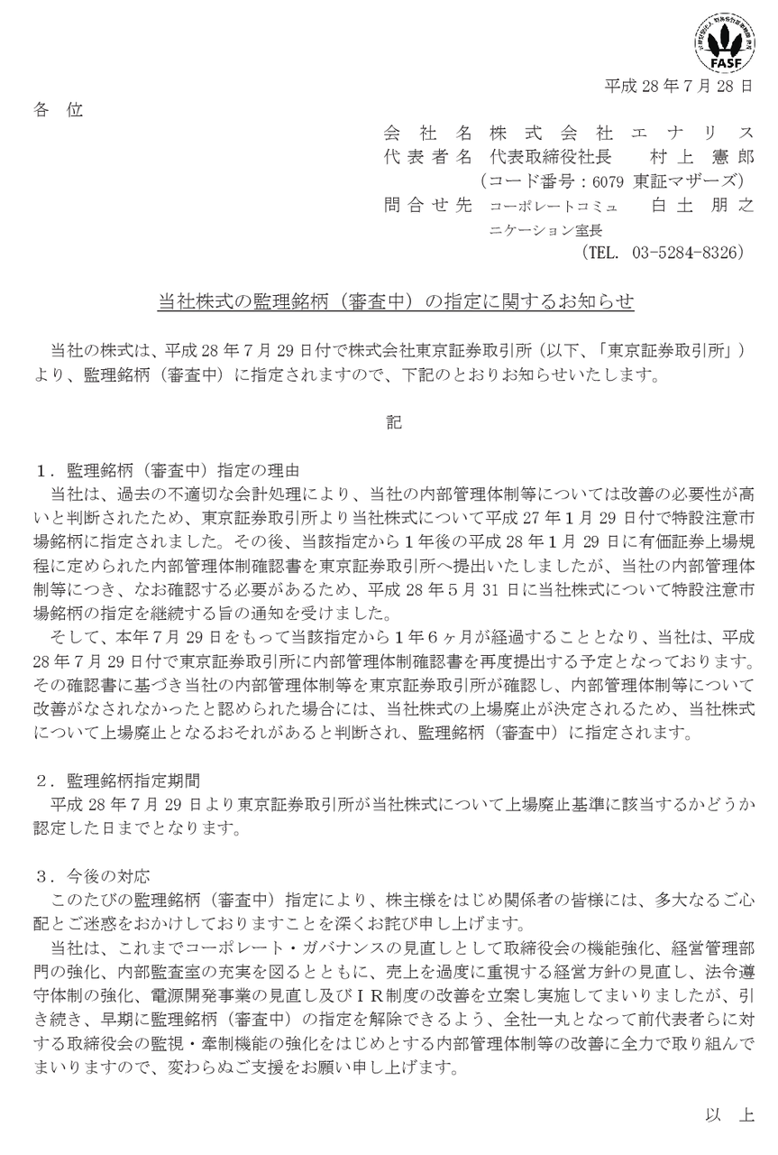 日本版「ぷちエンロン」事件、エナリスが上場時から手を染めていた架空売上の粉飾決算を遠回しに認める http://t.co/mIAQHJr6e8