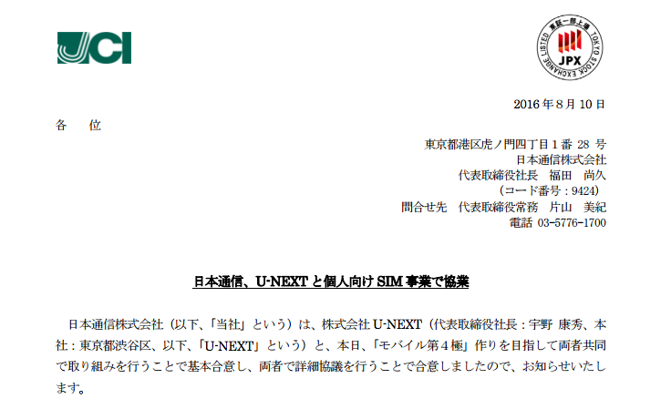 日本通信は、個人向けMVNO(仮想移動体通信事業者)事業をU-NEXTに譲渡すると発表した。