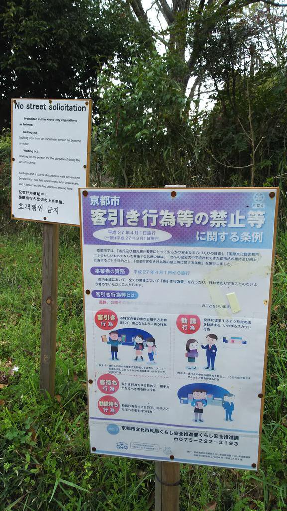 日本語と英語の京都市のルールでは違法という内容の注意の看板が至る所にあったな