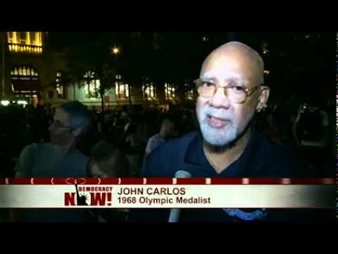 グッドマン: 「ウォール街を占拠」でのジョン・カーロスでした。オキュパイの野営地では拡声器の使用が警察当局によって禁止されているので、人々は人間マイクの手法を使って、あなたの発言がこだまのように繰り返されました。当時あなたがなさったことと比べて、そして現在の人々の抗議の意義をどのように見ていますか?そして、振り返って、あなたのキャリアは、あの出来事の後でどのような影響を受けましたか?