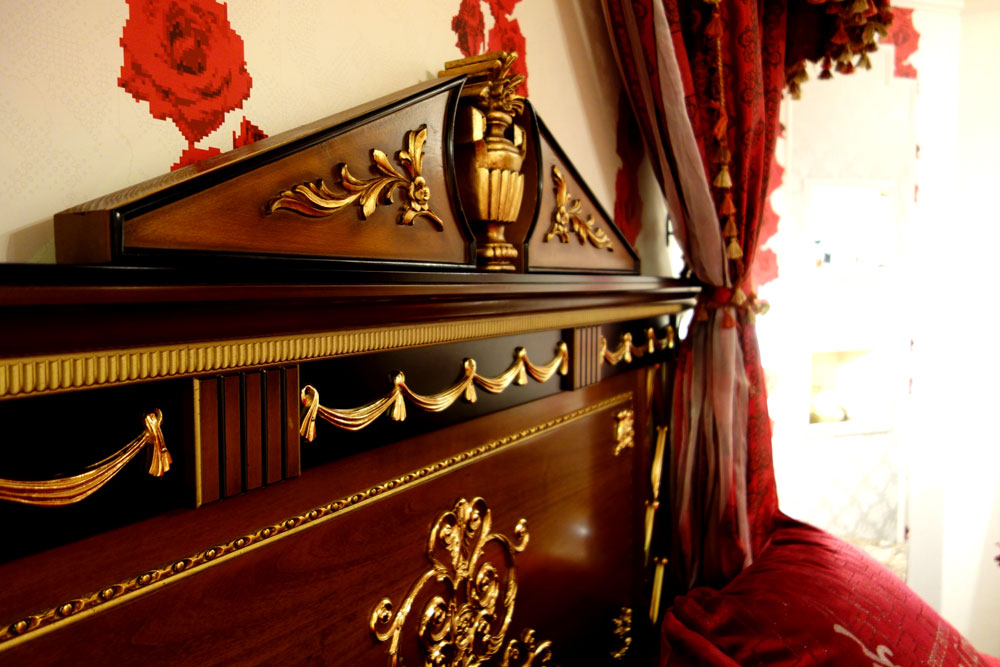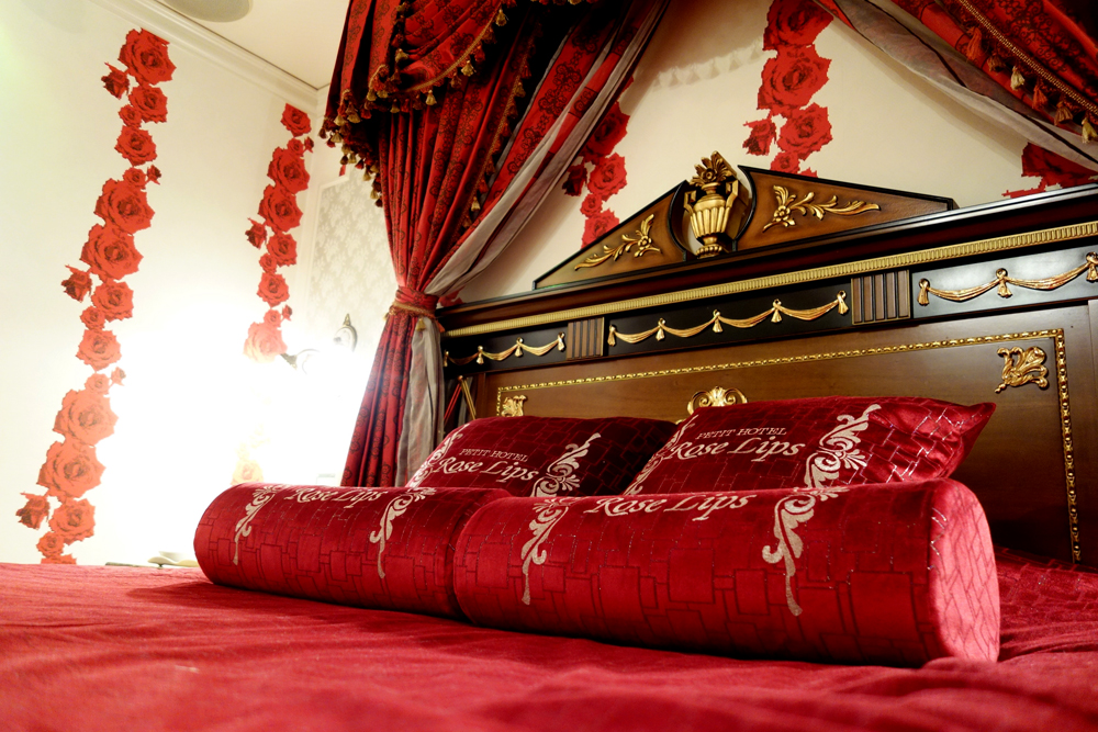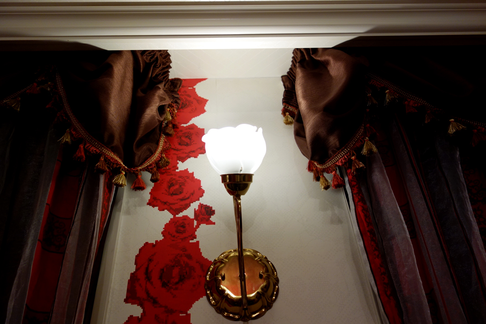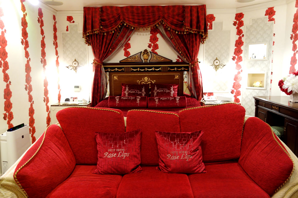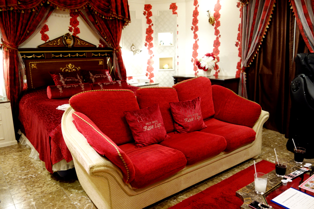 その部屋はモチーフの赤いバラがこれでもかと散りばめられていて、難波にいるのに一気に別世界に来たようだった。