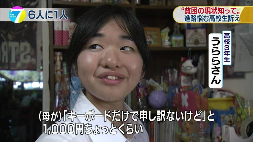 NHKの動画はこちら。うららさんが貧困で進学すらできないと切実に訴える内容だ。