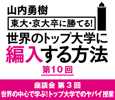 山内 第1回目は、どのようなルートで海外留学を実現したのか、第2回目は英語が苦手でも、有名大学に行くために授業で好成績を取る方法を話していただきました。