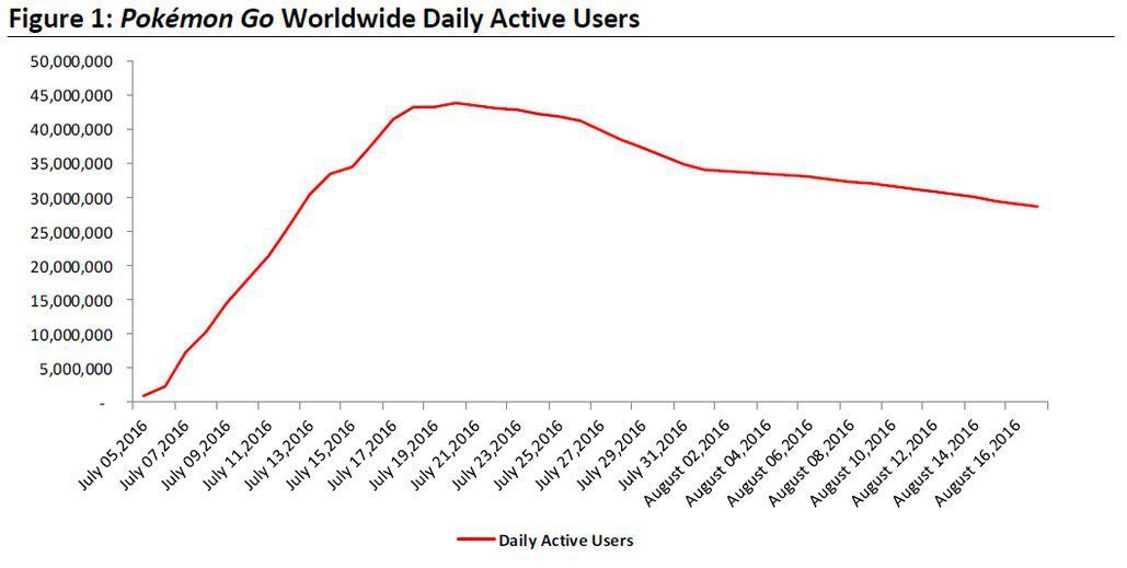 「Pokemon GO」の利用はピークを過ぎ、すでに減少傾向にあるという。