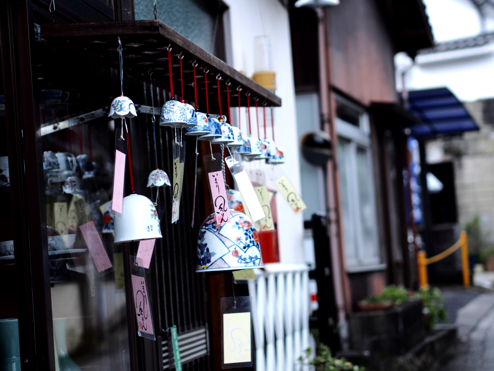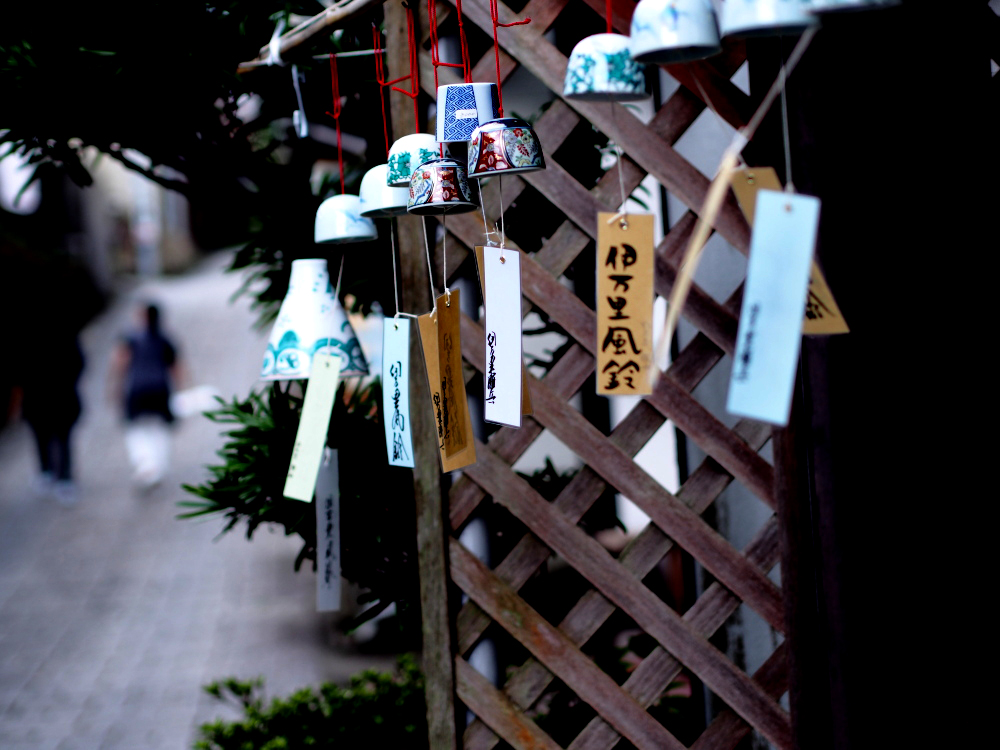 伊万里焼の窯元が密集している町で期間中は各窯元が店のおもてに風鈴つってくれるのねん