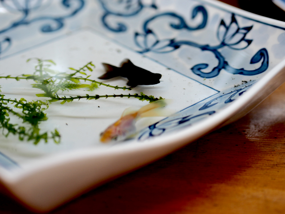 ようは伊万里焼の大皿で金魚飼ってるだけ