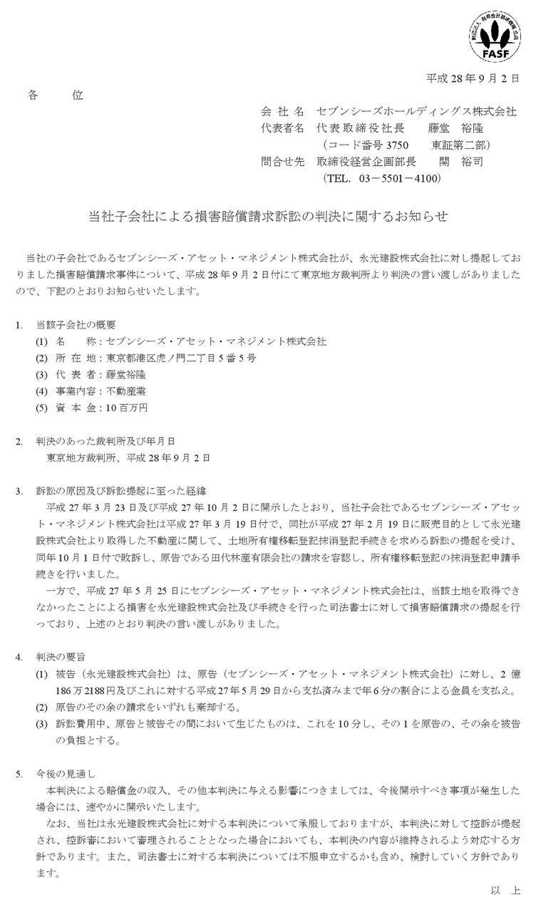 2016/09/02 17:40 セブンシーズホールディングス