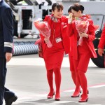 最終便の客室乗務員らは機体を前に記念撮影し、別れを惜しんでいた。写真を撮り終えた客室乗務員の中には、涙ぐんでいる人の姿もあった。
