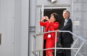 日本発最終となる成田発ウィーン行きOS52便をスマートフォンで写真に収めるオーストリア航空の客室乗務員=16年9月4日 PHOTO: Tadayuki YOSHIKAWA/Aviation Wire