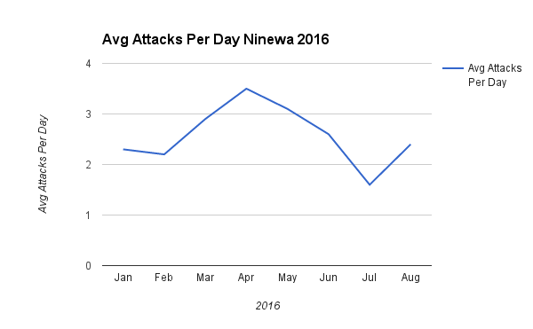 last five months, but spiked in August. The number of average attacks per day