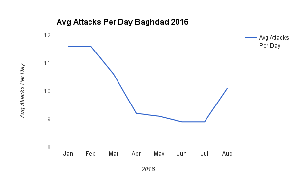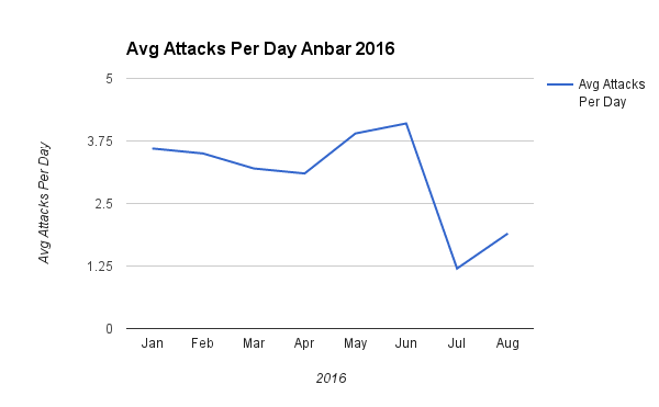 year. Increases in violence were seen in Anbar, Baghdad and Ninewa.