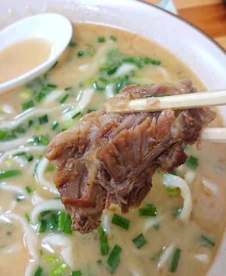 歯ざわりもツルッとしてて心地よく、また、こってり出汁のスープともよぉ~く絡んでくれて、メッチャ美味いッ‼\(゜▽\)(/▽゜)/イェーイ♪