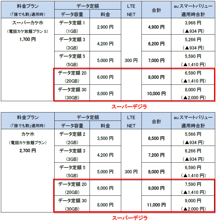 | au向け「スーパーデジラ」が9月15日に提供開始!月20・30GBまで使える |