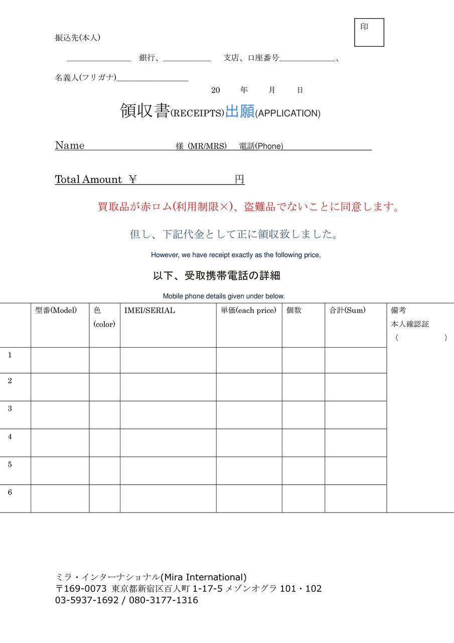 ★郵送買取対応!!(4台以上で着払いOK)下の申込書をご利用ください。フリガナを書いていただけますと幸いです。お電話をお願いします。