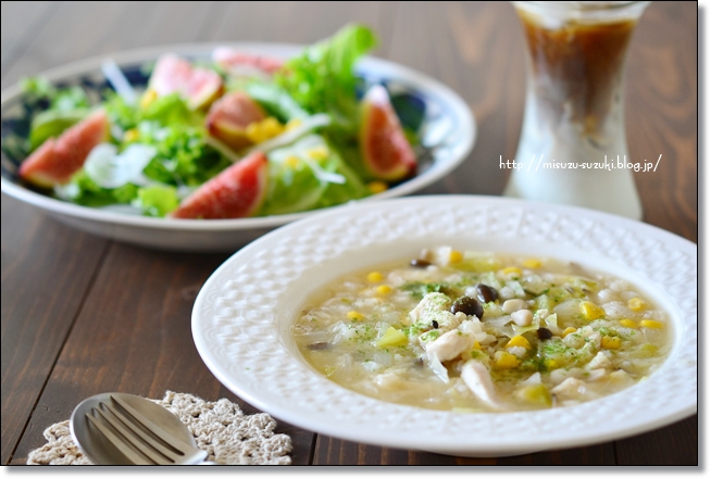「もち麦」を使った食べるスープのレシピです。
