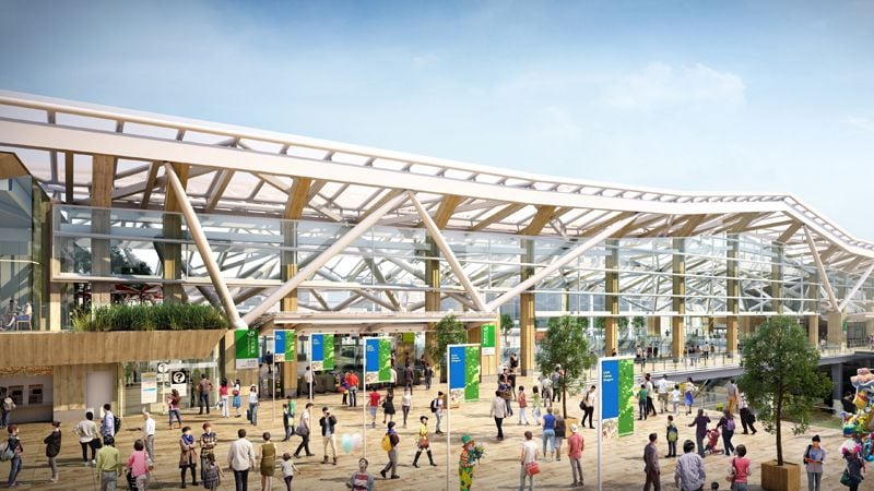 木材や白い膜を使った大屋根は、折り紙や日本家屋の障子をイメージしたという。壁面はガラスで覆われ、コンコース内には巨大な吹き抜けが設けられる。日本ではあまり例を見ない、開放感あふれる駅になりそうだ。