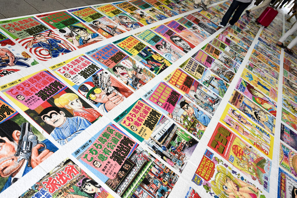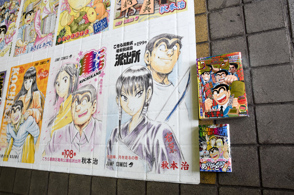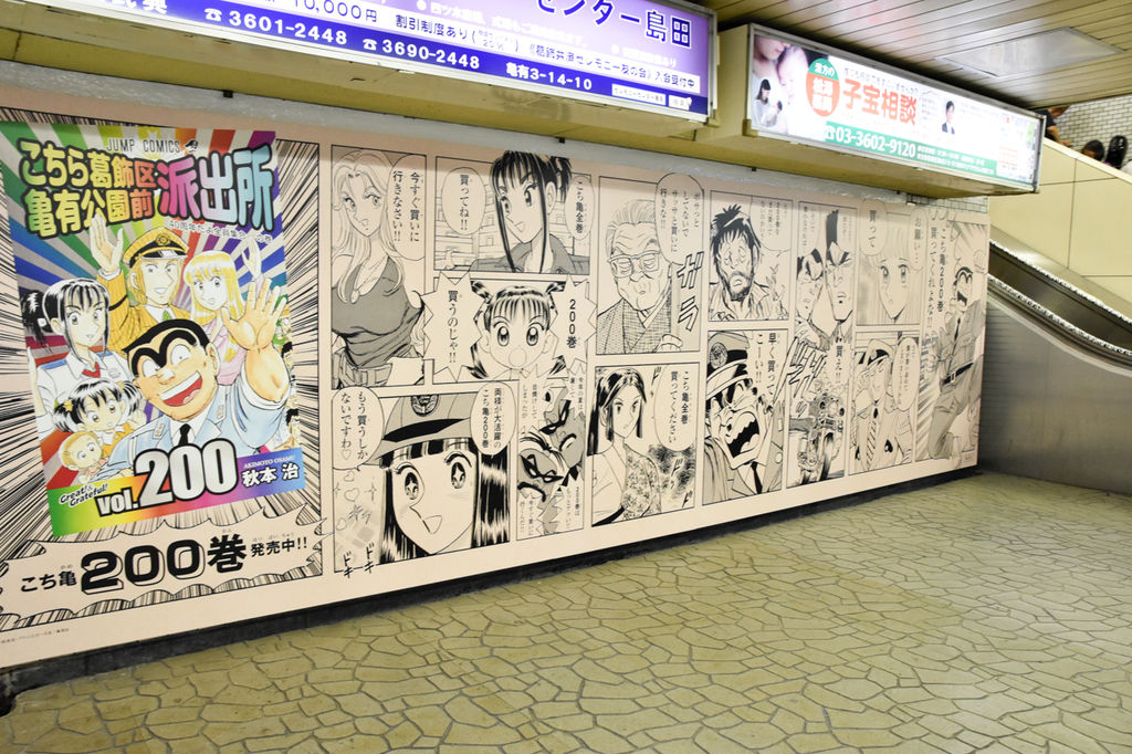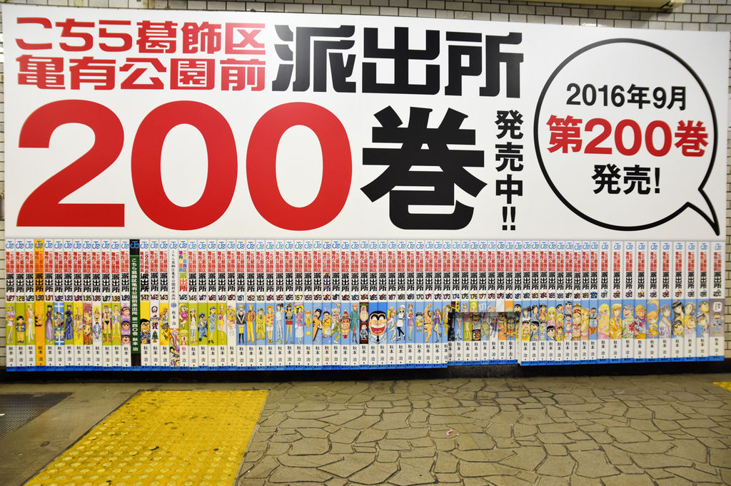 駅構内がとにかくすごいんです。改札前が完全にこち亀。券売機前。全200巻の表紙一挙大公開…だと…。