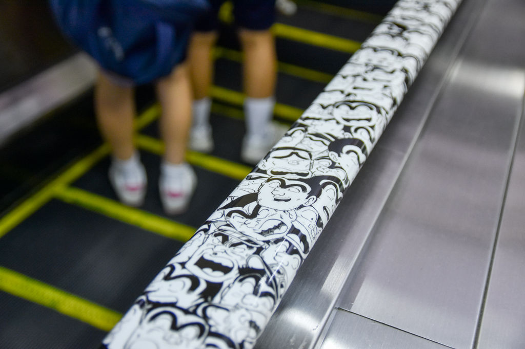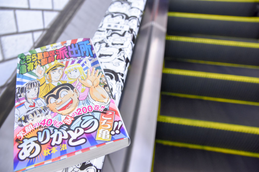 エスカレーターの手すりも両さん!部長もいる!