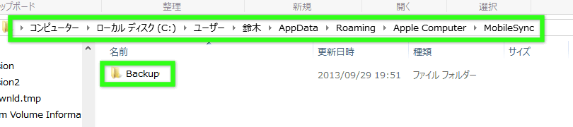 「AppData」→「AppData」→「Roaming」→「Apple Computer」→「MobileSync」