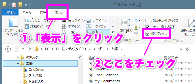 という場所に保存されます。「(ユーザー名)」は、人によって変わってくる(「太郎」とか「user1」とか)のですが、それ以外は同じです。