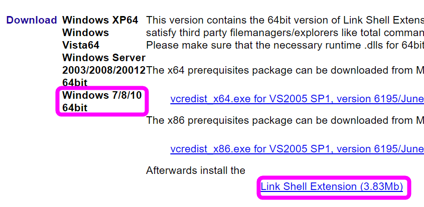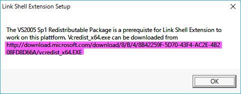 The VS2005 Sp1 Redistributable Package is a prerequiste for Link Shell Extension to work on this platform.