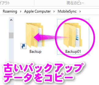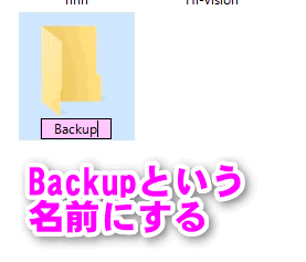 Cドライブ上の「Backup」フォルダ(元々あった方)の名前を「Backup01」のように別の名前に変更します。