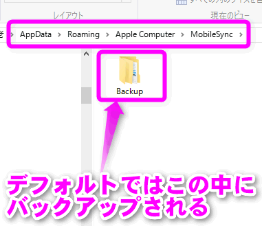 C:\Users\(ユーザー名)\AppData\Roaming\Apple Computer\MobileSync