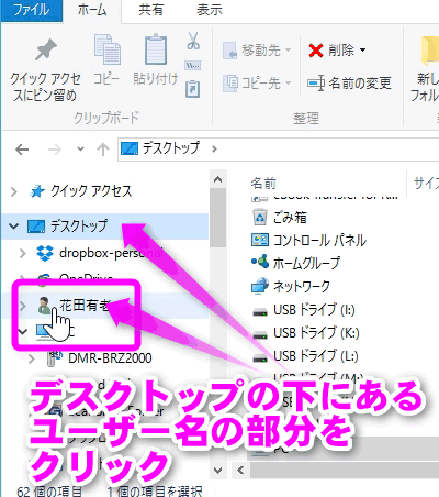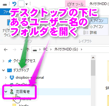 このフォルダを開くには、以下の手順になります。