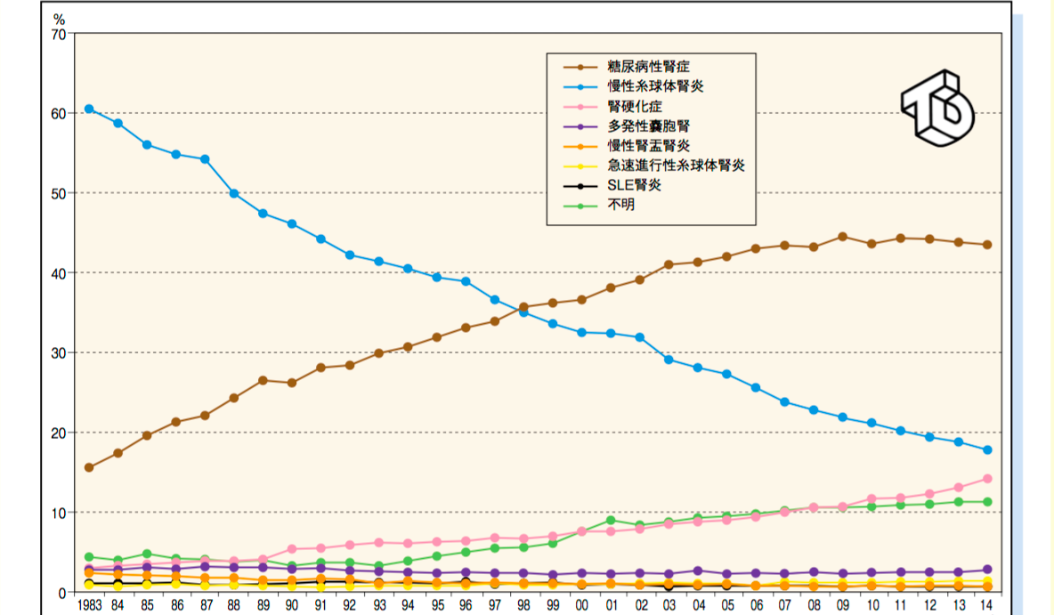 2型糖尿病が原因で新しく透析になる人は、2014年の最新データで約45パーセントもいます。