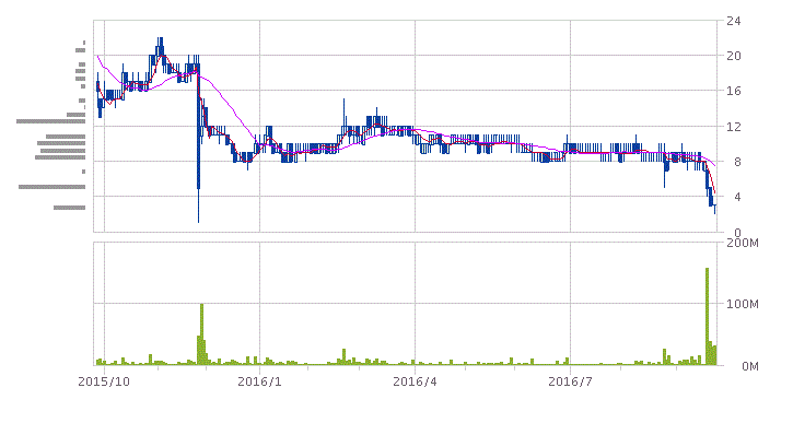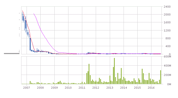 この一年で株価1/10かー。今が買いやで