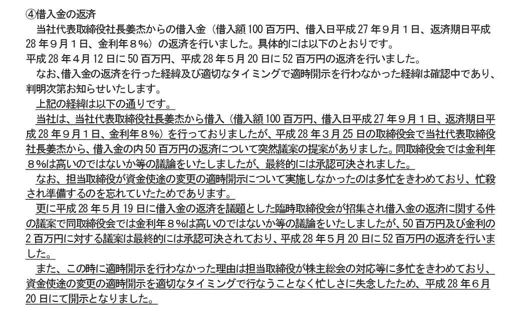 ②借入金返してたけど忙しすぎて開示忘れてた