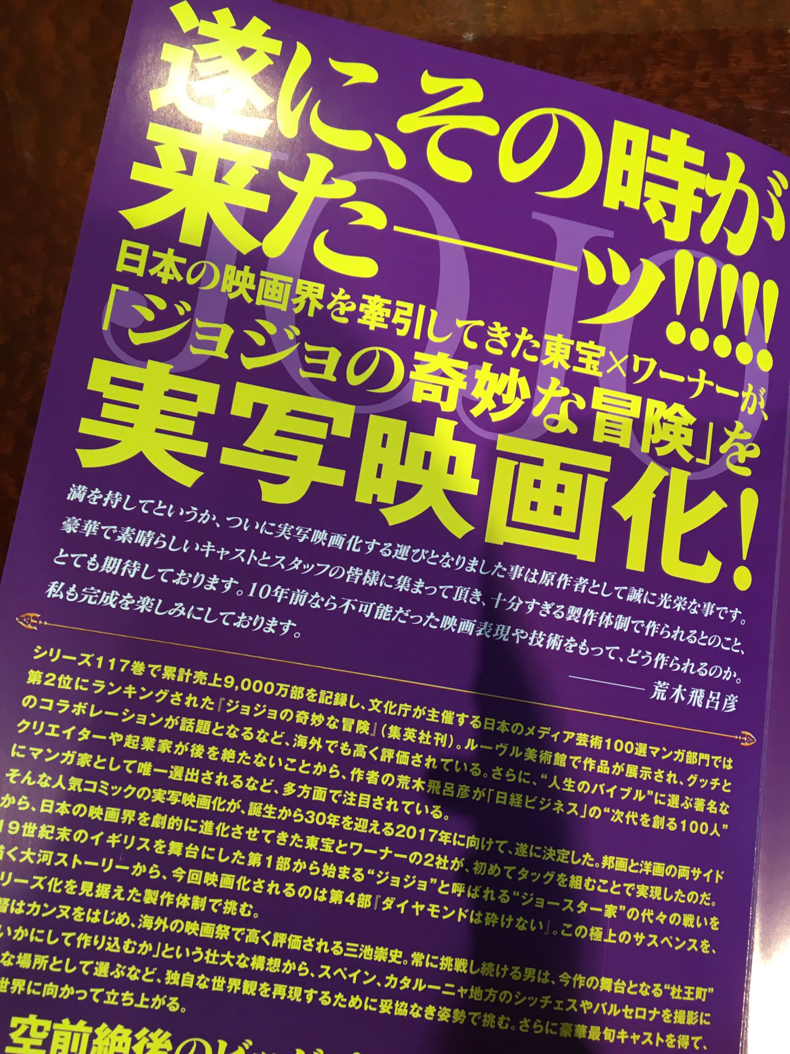 『ジョジョの奇妙な冒険 第4部』実写映画化発表パンフレット