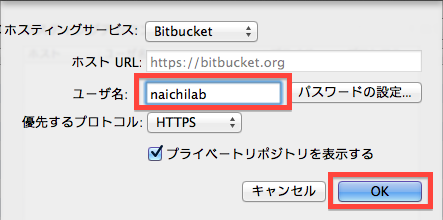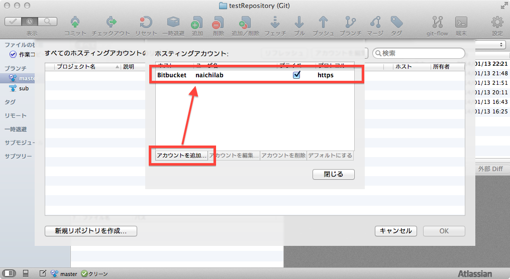追加ボタンからBitBucketアカウント情報を登録
