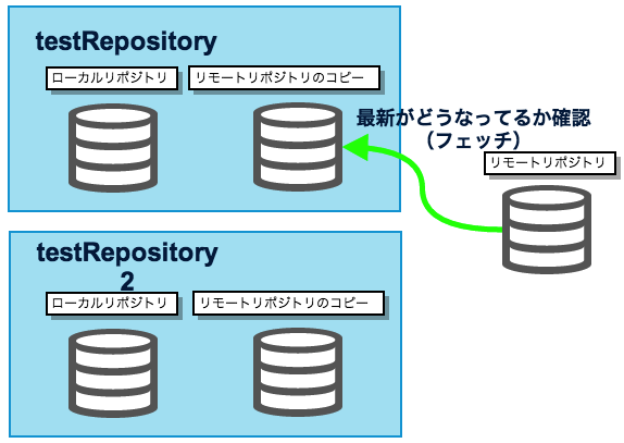 最新のリモートリポジトリを取得し、コピーを差し替えるのがフェッチです。