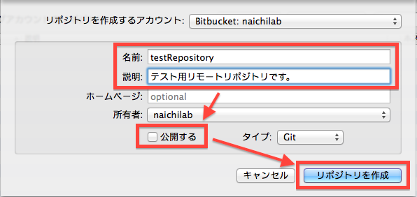 ※Macならリモートリポジトリの作成は全てSourceTreeから行えます。※Windowsの場合は一部BitBucketでの操作が必要です。(2014/01/20時点)
