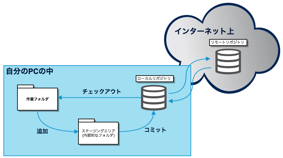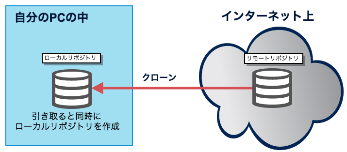 これに対して「リモート」リポジトリは、インターネット上に作成するリポジトリのことです。