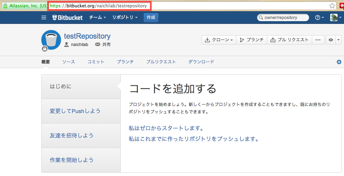 上記の場合「https://bitbucket.org/naichilab/testrepository.git」ですね。