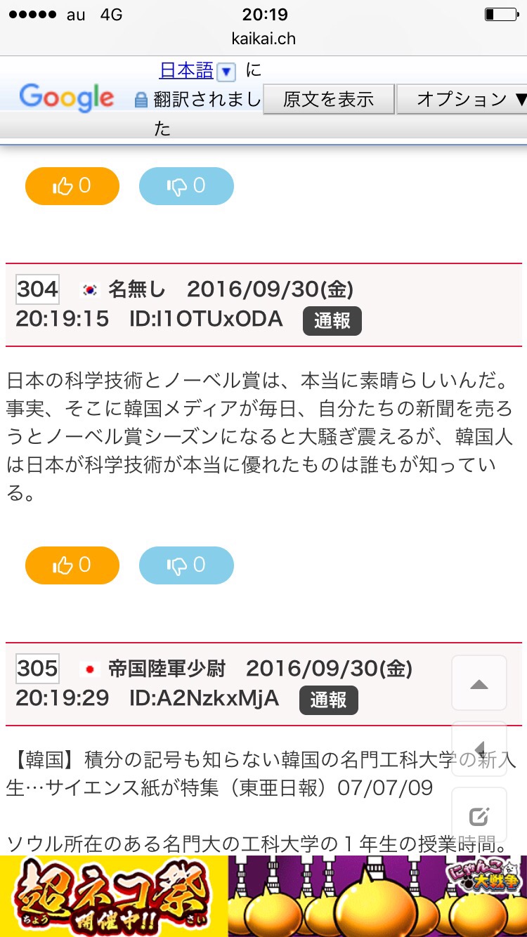 友好掲示板なのだから、韓国人の1人ぐらい「おめでとう」してくれると思ってたのに