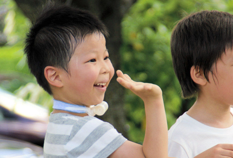 結大くんは鼻と口から呼吸ができずに生まれ、声帯まひで気道が狭まる「気道狭さく」と診断された。生後すぐに気管切開し、以後は喉に着けたカニューレと呼ばれる管からたんを吸引する医療的ケアを必要とする。