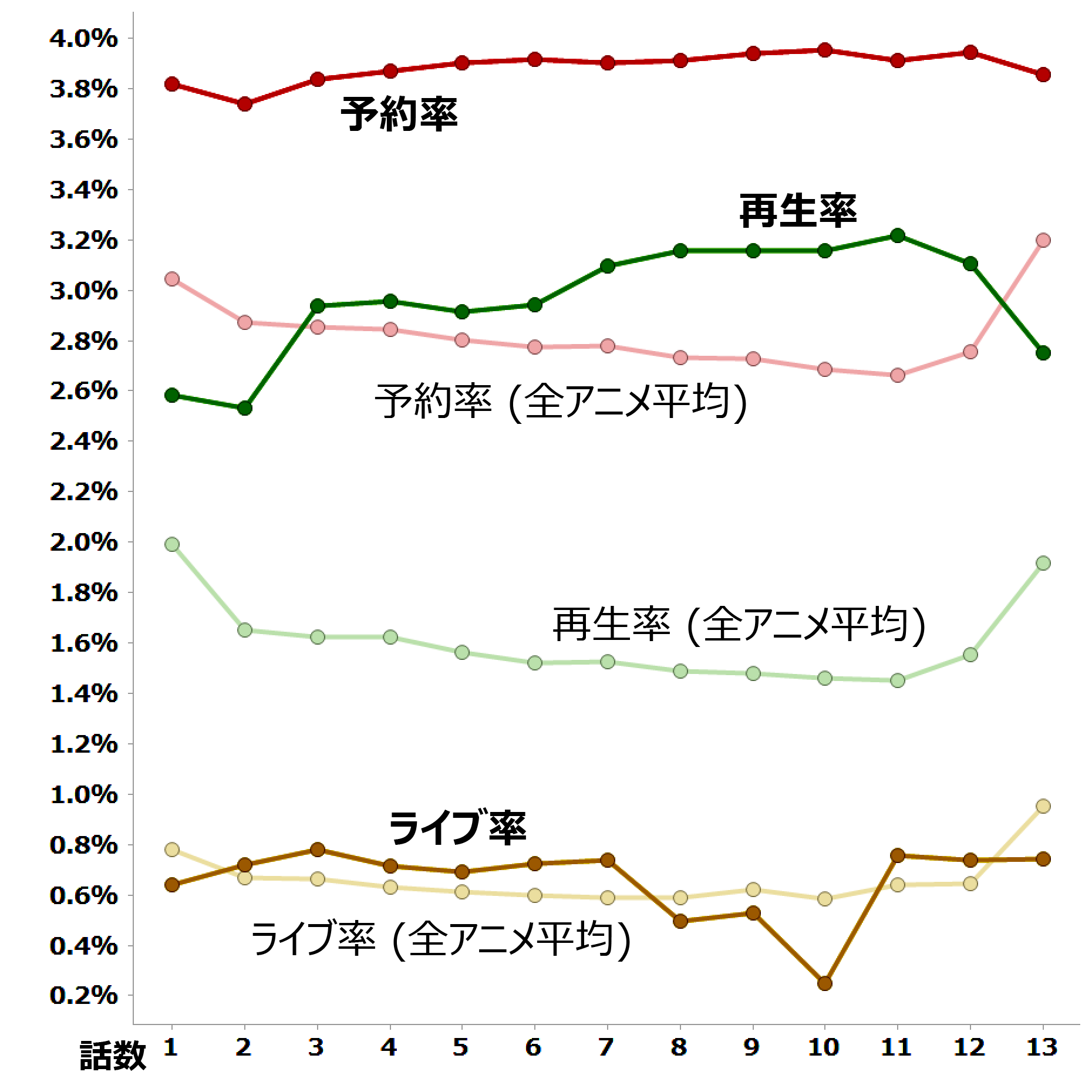 - 放送時間が直前に変更になった場合、予約率が極端に下がることがあります。その場合、放送時間変更前の値から補正を行っていますが、完全なものではありません。ご了承ください。