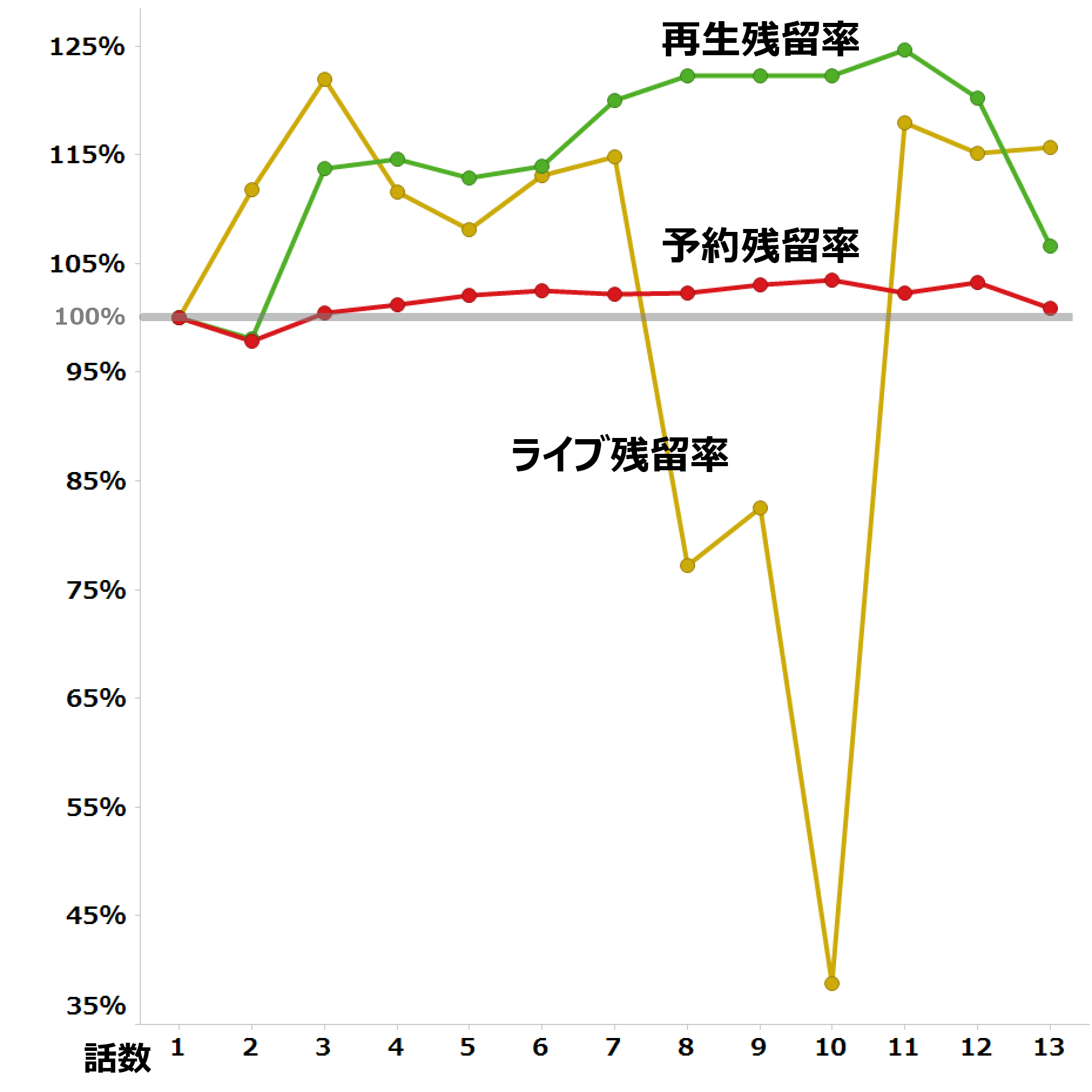 ※残留率:1話目を100%としたときに、2話目以降それぞれを1話目と比較したものです。