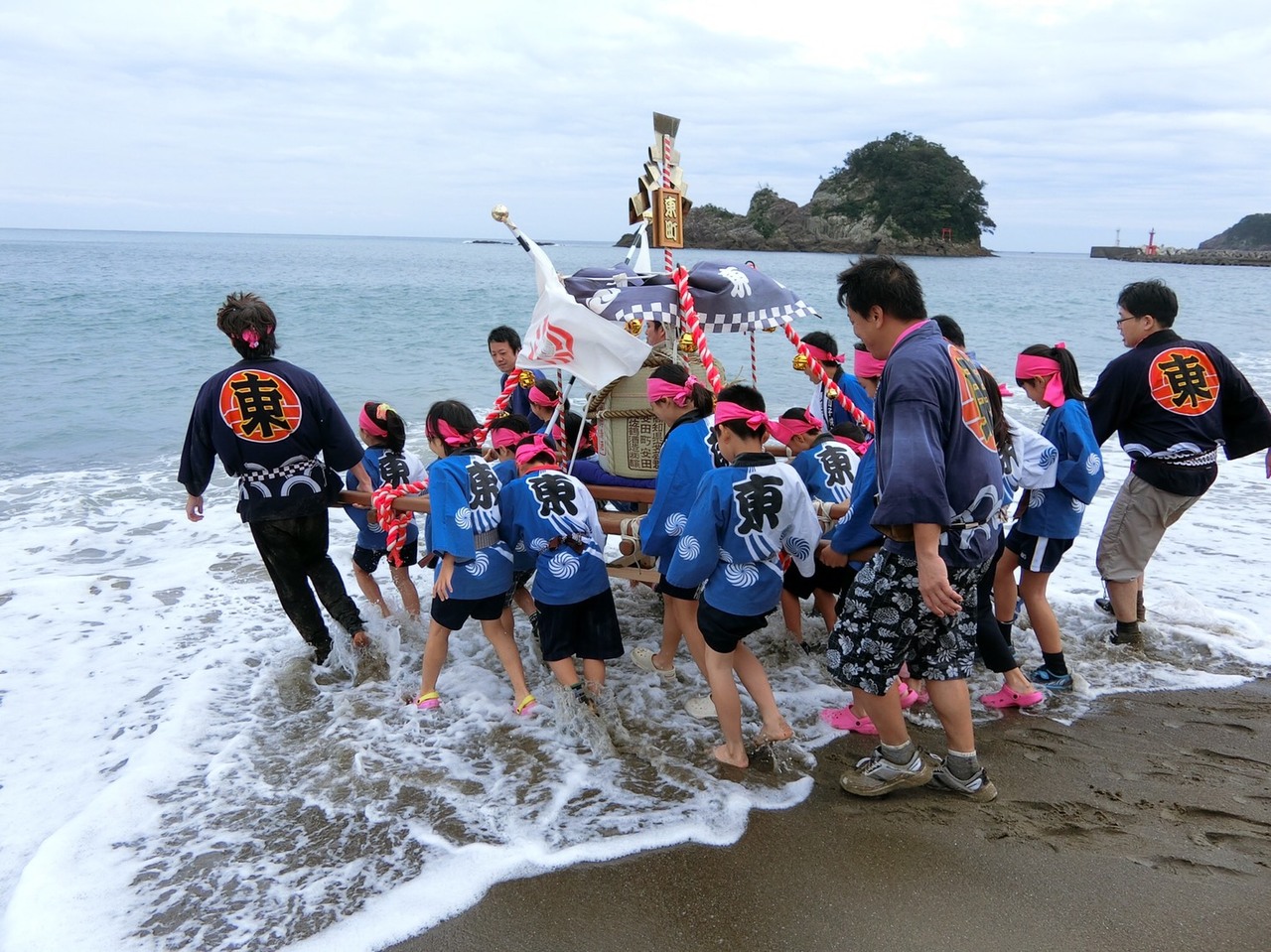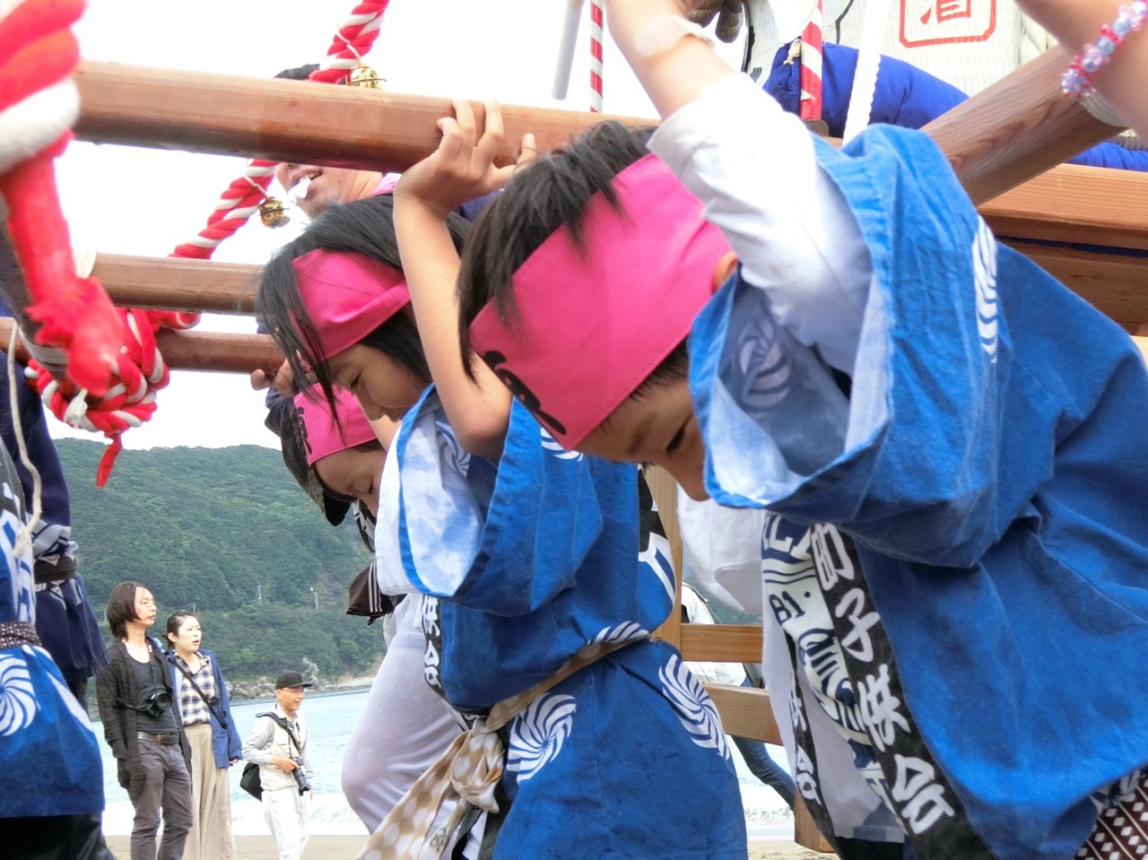 (2016.10 美波町秋祭りちょうさ。こどもみこしの「お浜出で(海に入ること)」)