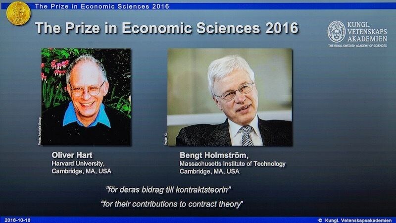 2016年のノーベル経済学賞(正式名称はノーベル記念経済学スウェーデン国立銀行賞)の受賞者が10月10日に発表された。受賞したのは、オリバー・ハート米ハーバード大教授と、フィンランド出身のベント・ホルムストローム米マサチューセッツ工科大教授。「契約理論への功績」が受賞理由だ。