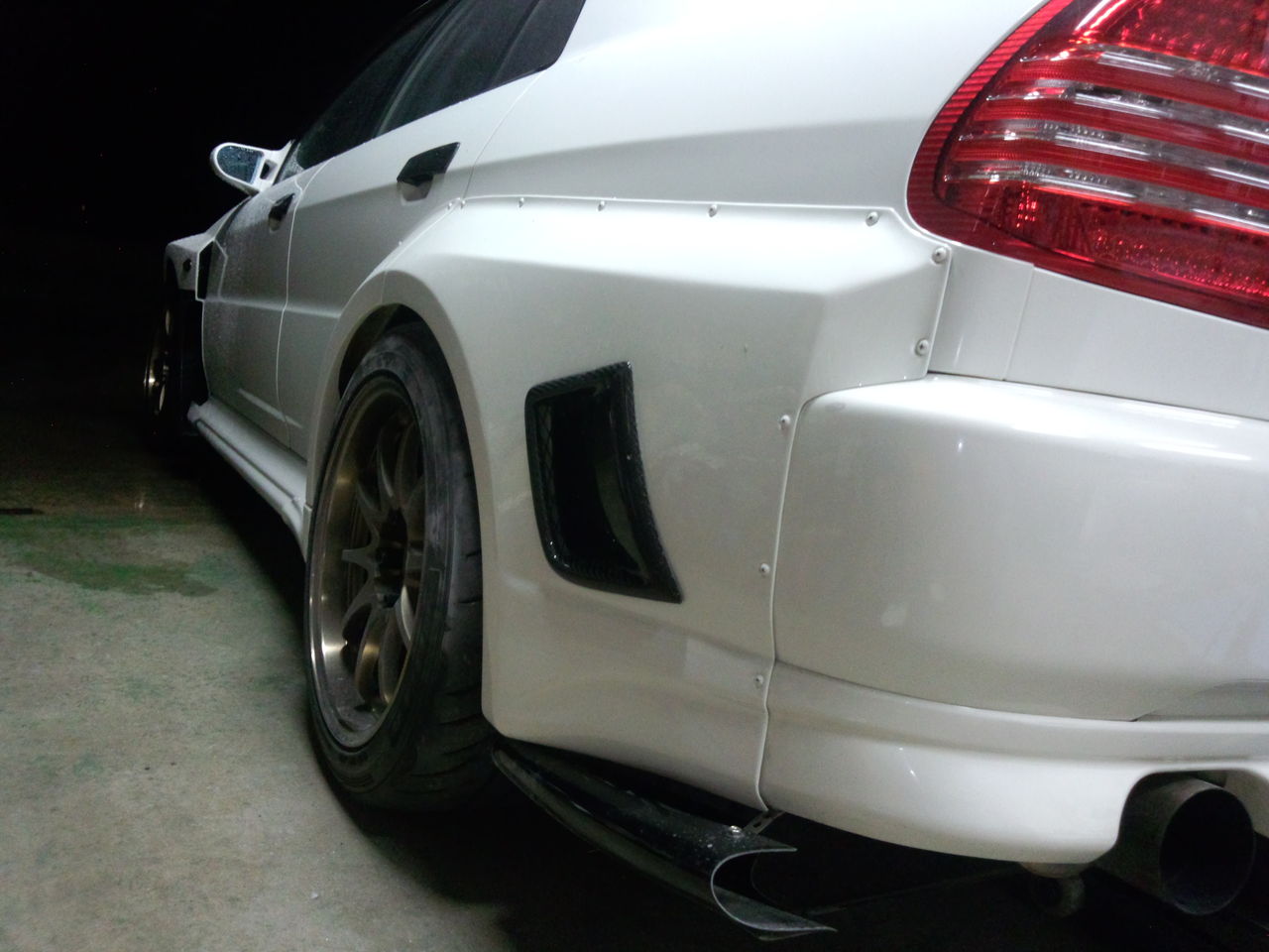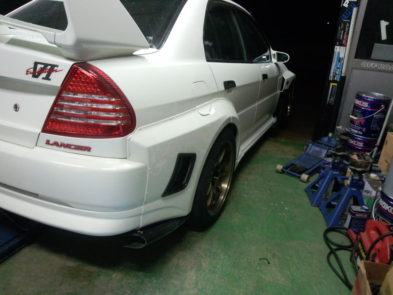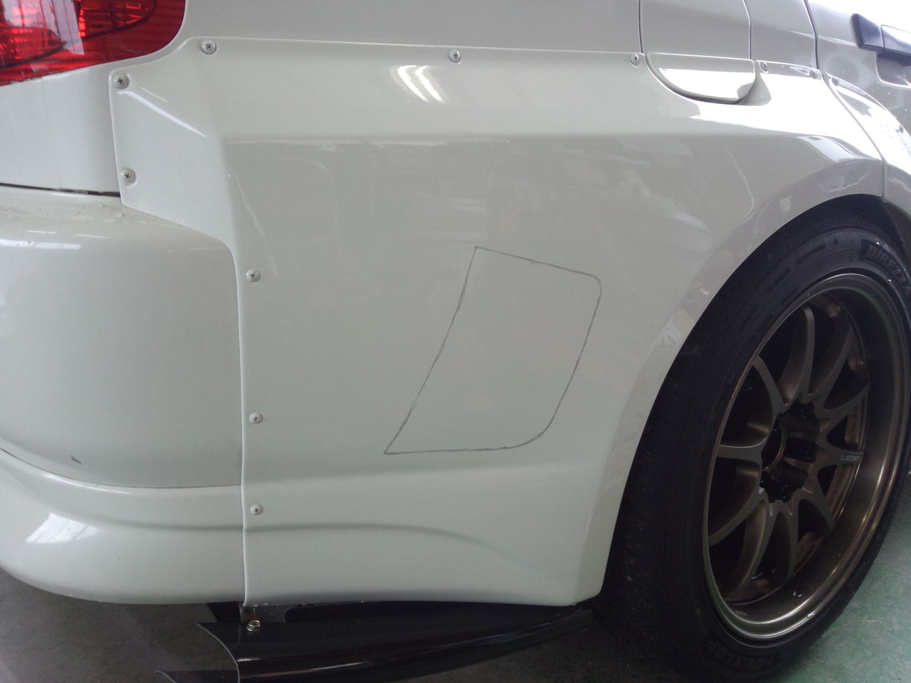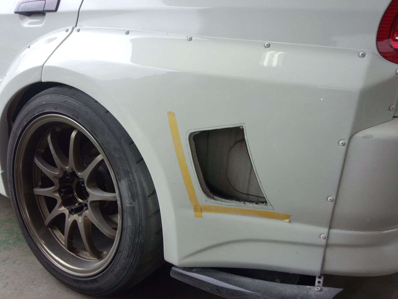 昨日に引き続きエボのボディワーク。昨日はボンネット、今日はリヤフェンダー。
