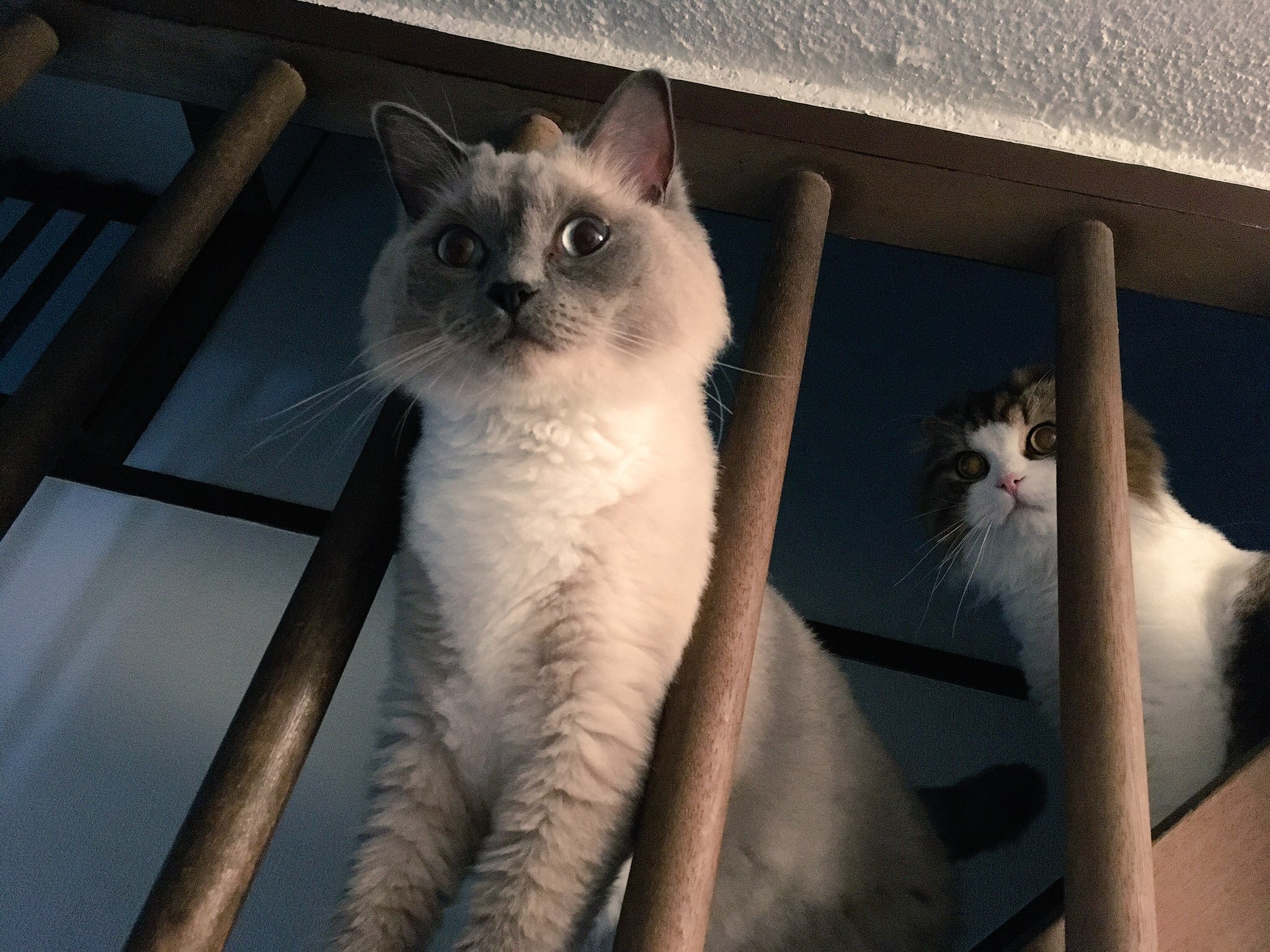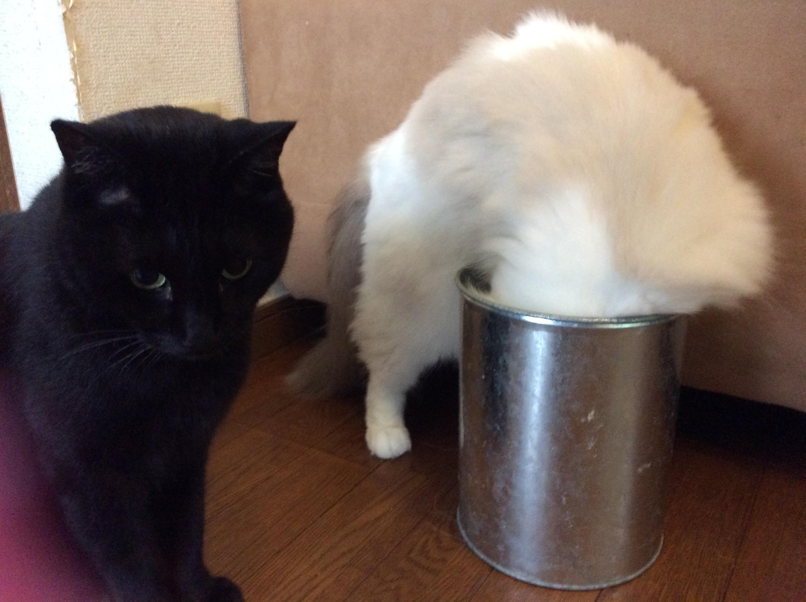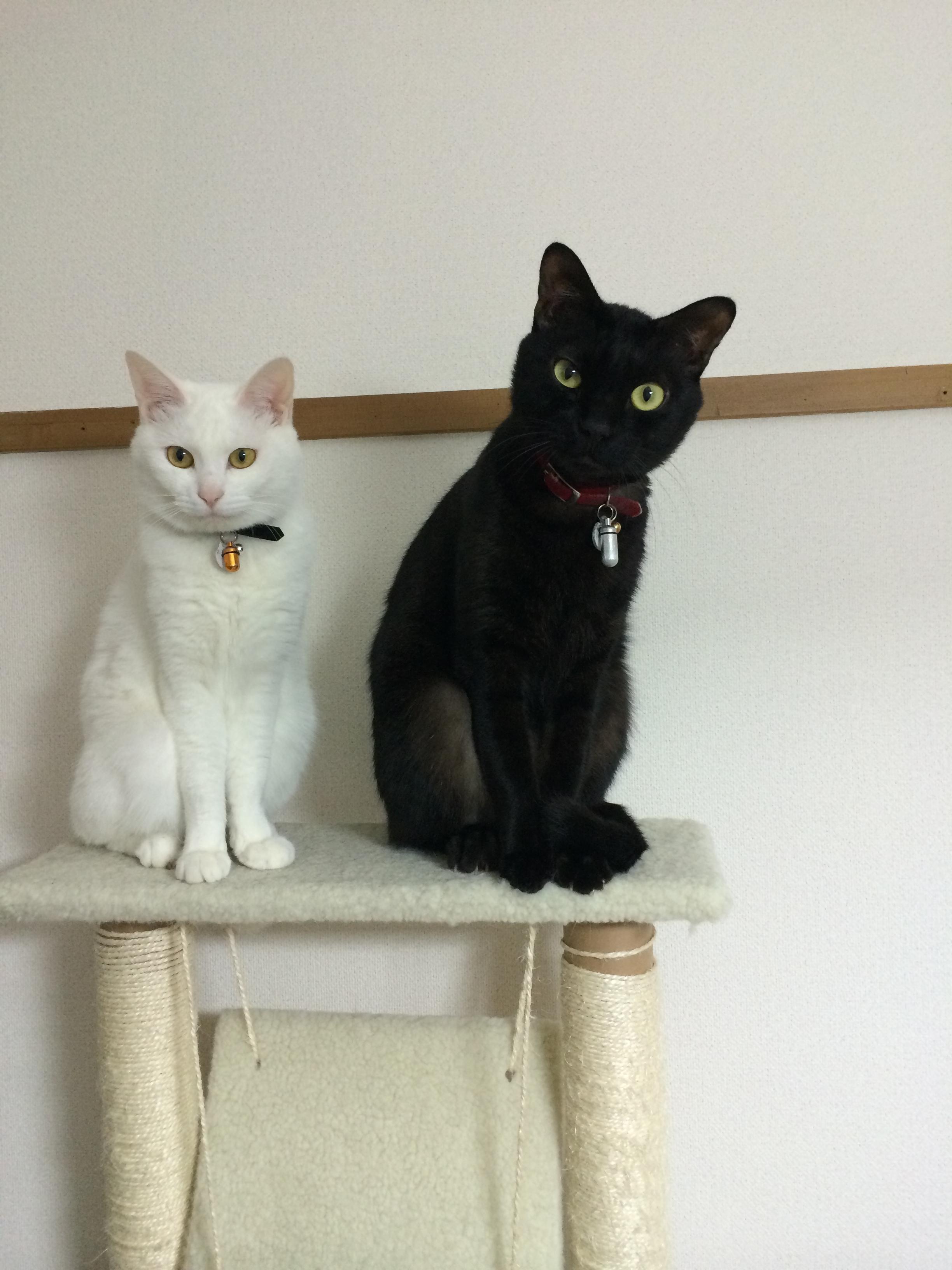 膨張色だからか白にゃんの方がでかいとよく言われまする…