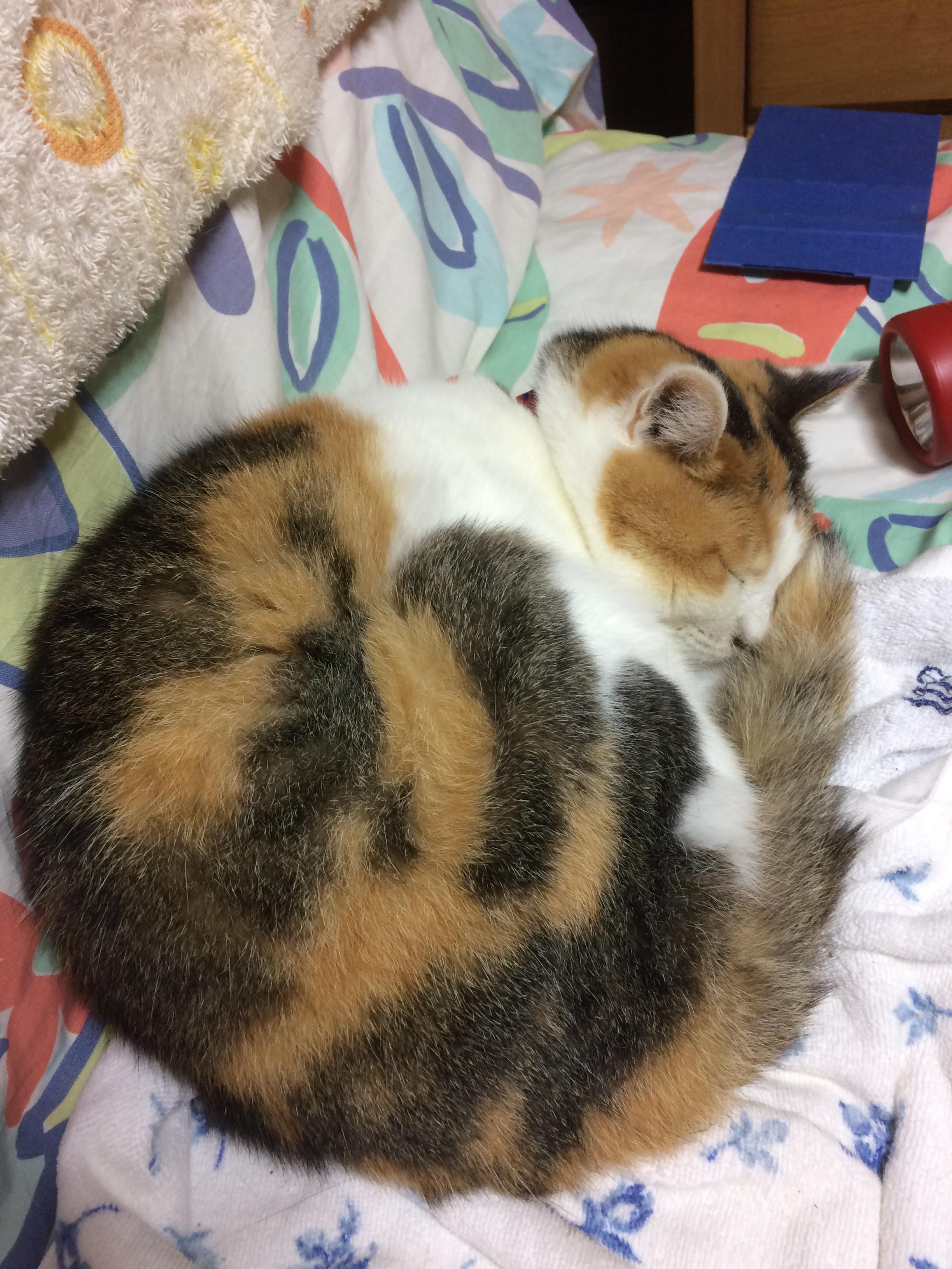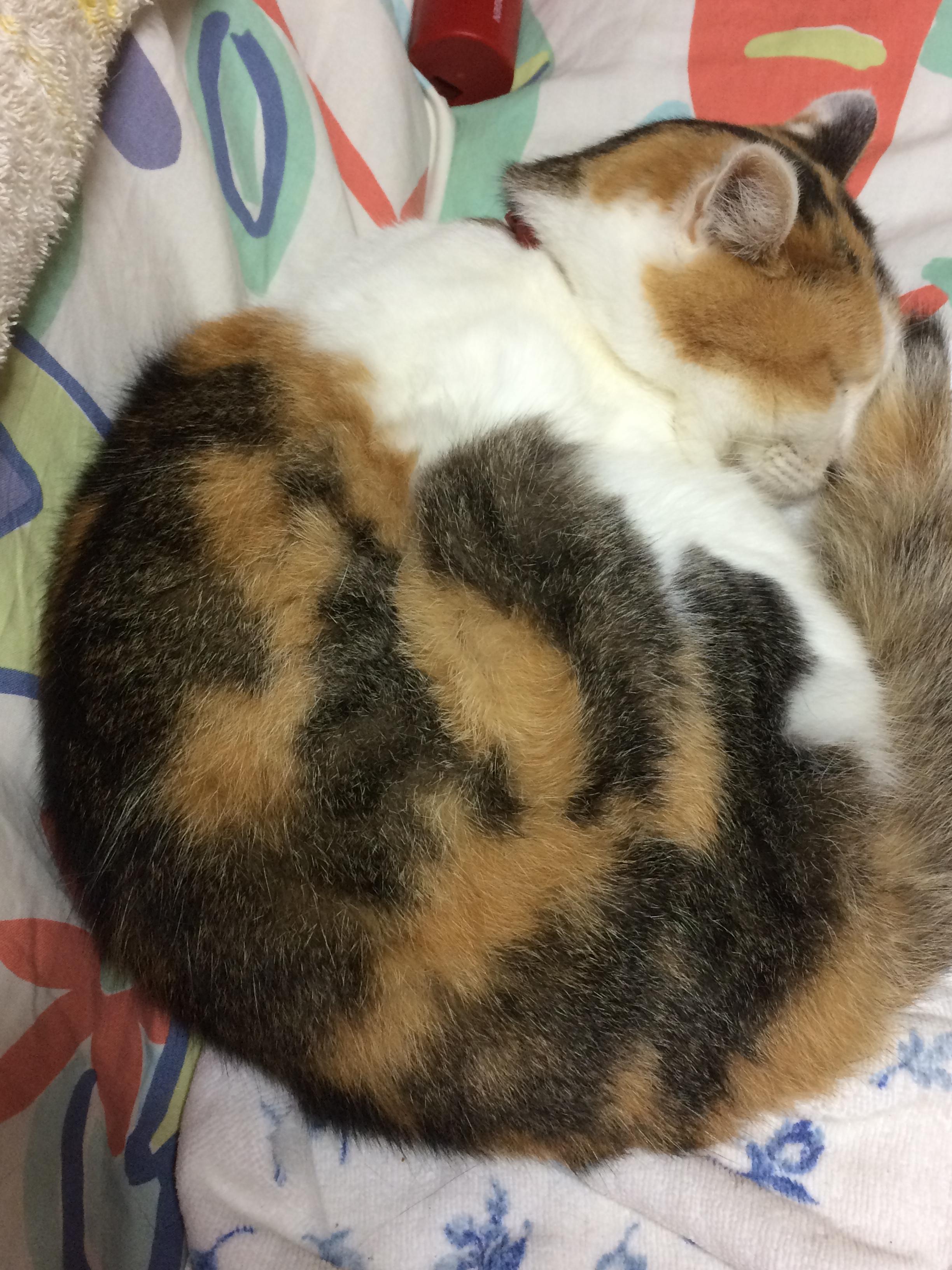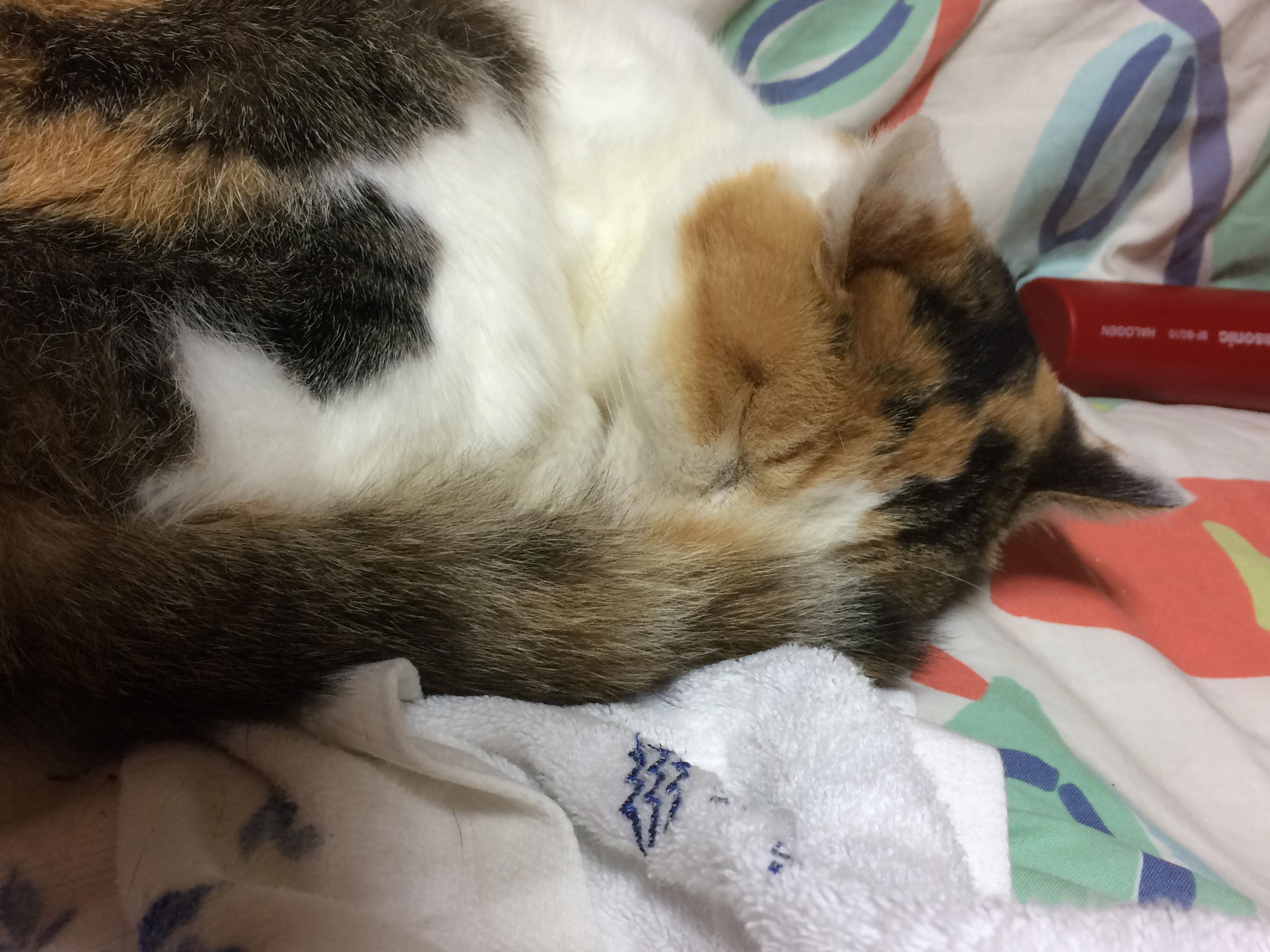 寝る三毛さん。正面から見るとこんな感じww