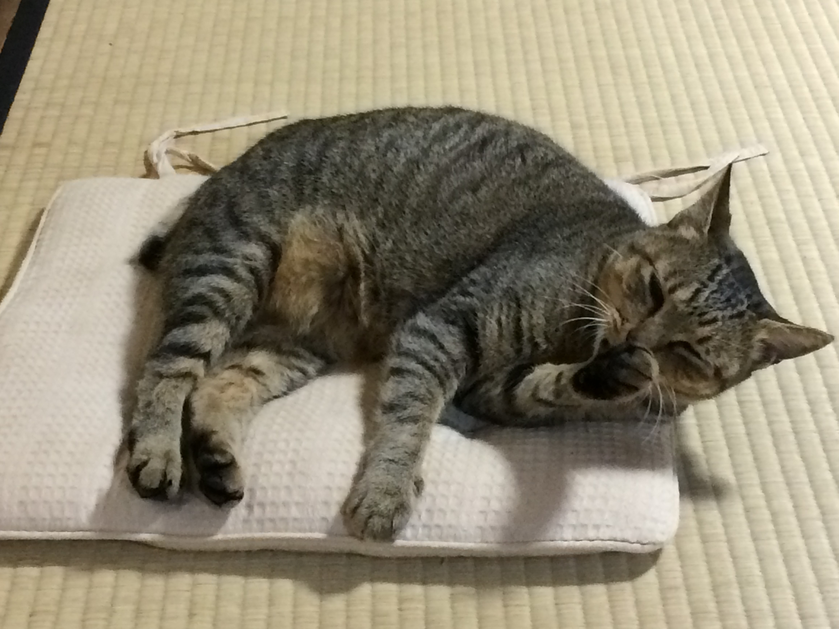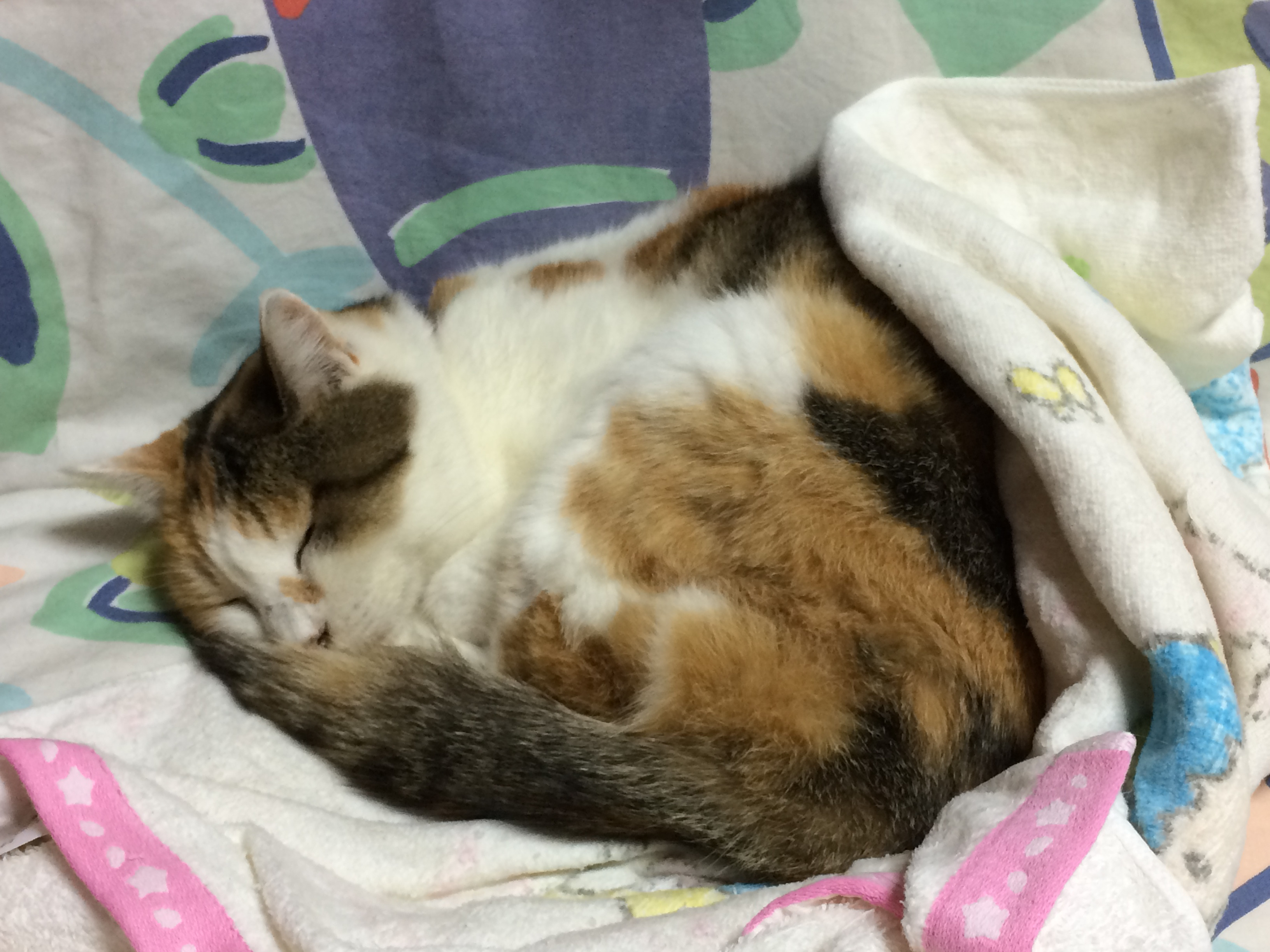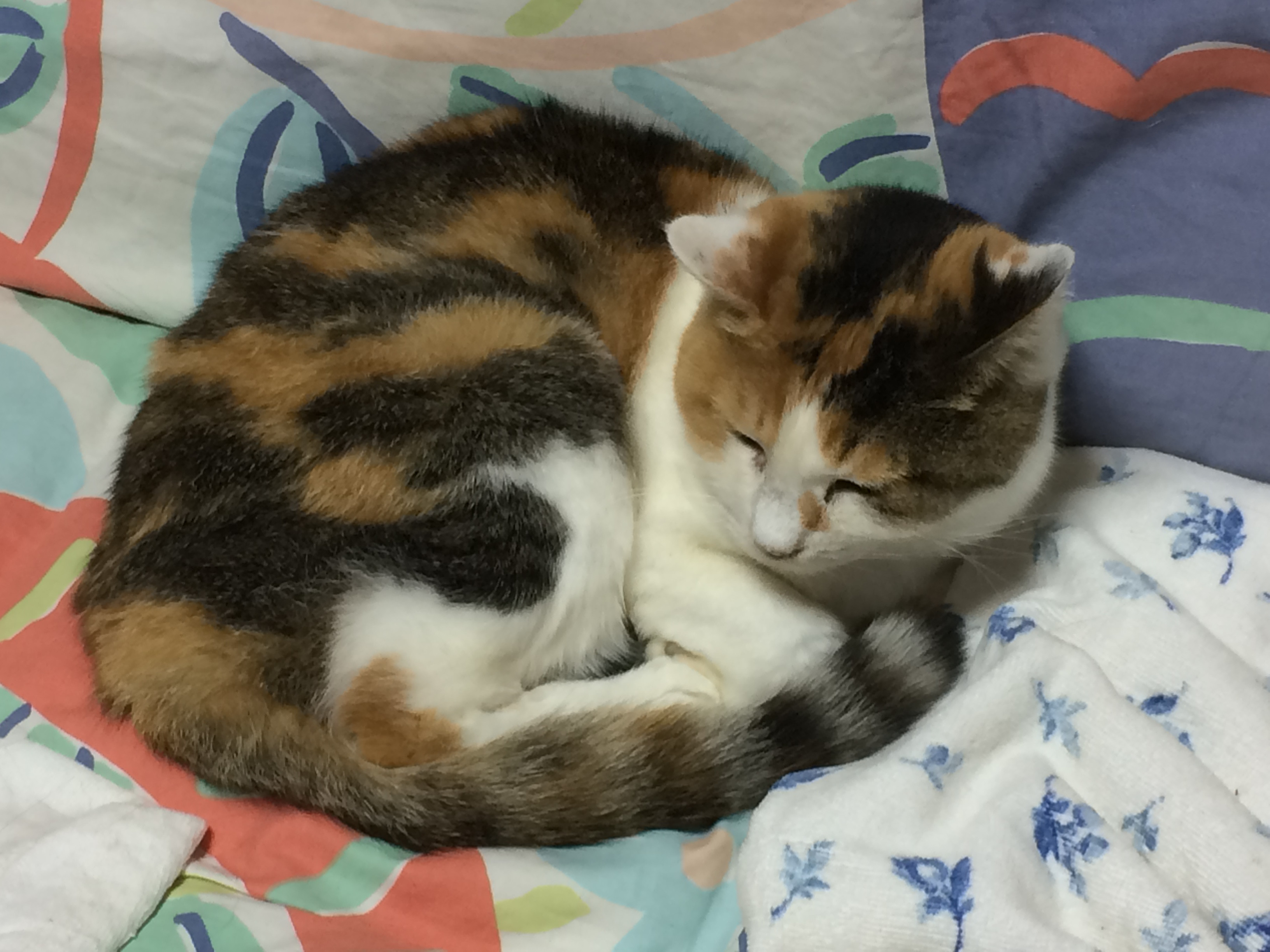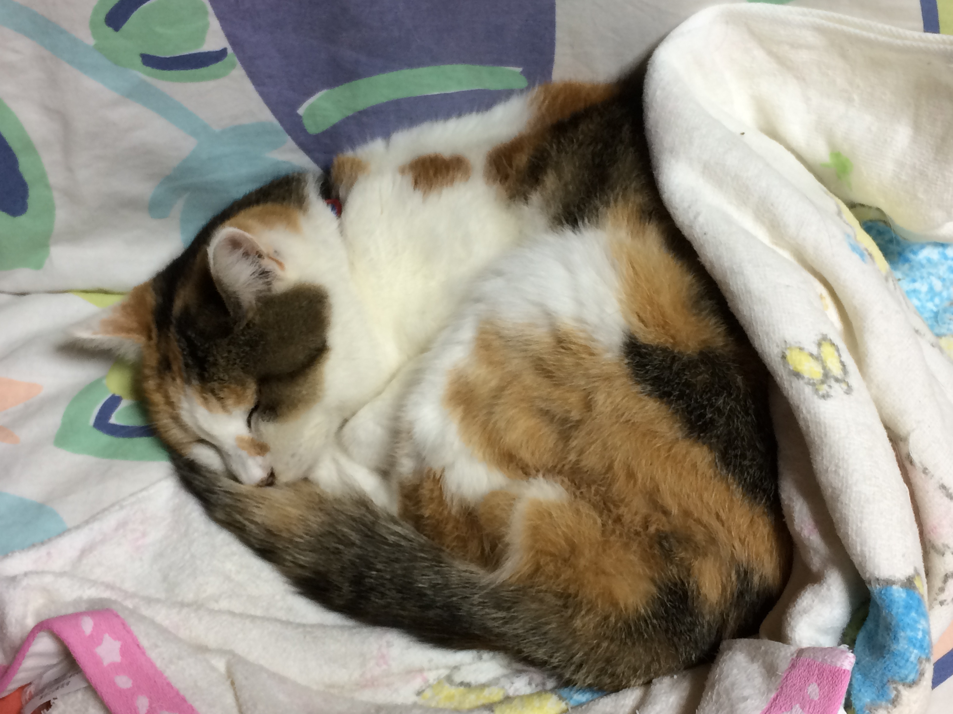 寝る三毛さん。正面から見るとこんな感じww